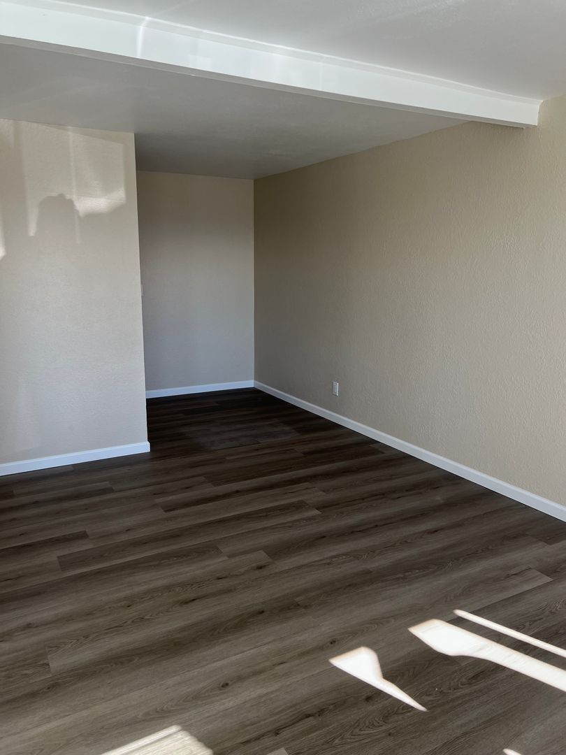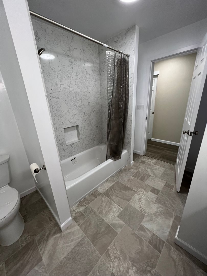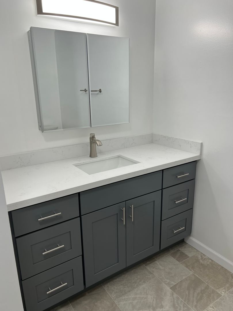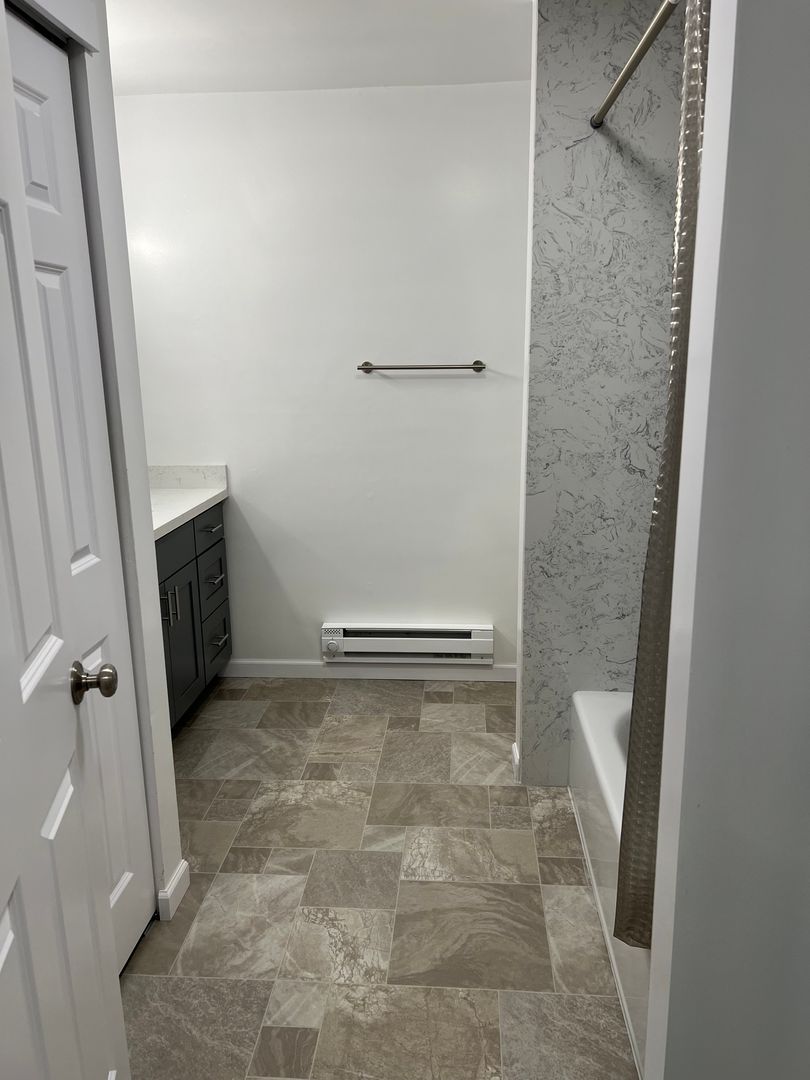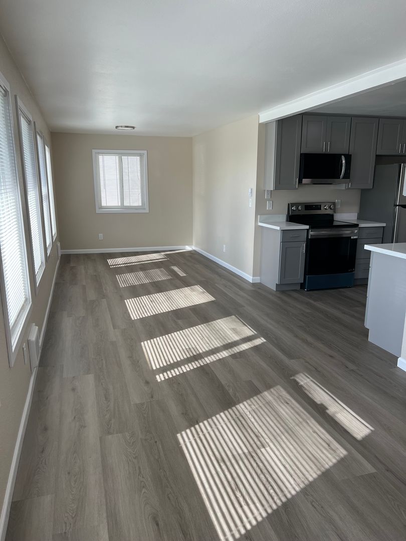 The modern kitchen shines with brand-new cabinetry, updated countertops, and stainless steel appliances that blend functionality with contemporary appeal. The bathroom has been completely refreshed with new cabinets, countertops, and durable vinyl flooring for a clean, polished look.