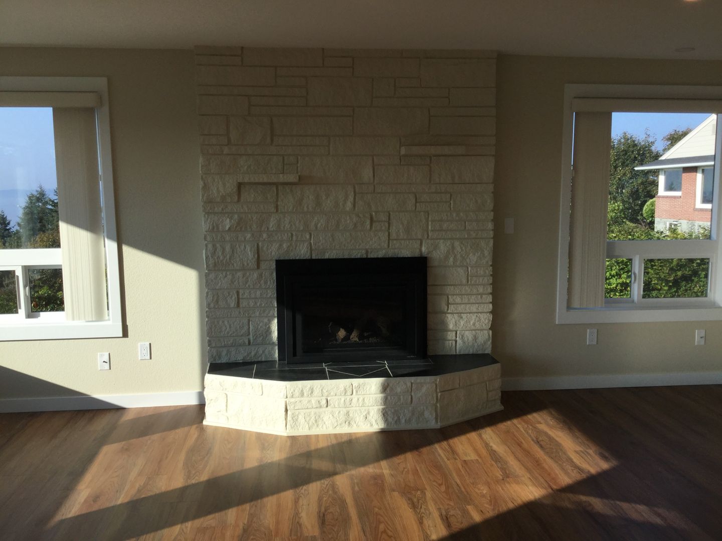The gourmet kitchen is a true showstopper, featuring stainless steel appliances, a gas range, quartz countertops, and soft-close cabinetry—perfect for everyday living and entertaining alike. Stylish vinyl plank flooring flows throughout, complemented by two cozy gas fireplaces that add warmth and ambiance.